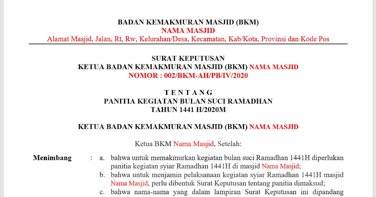 Mmi | berikut kami berikan contoh surat keputusan (sk) susunan panitia pelaksana qurban hari raya idul adha. Contoh surat permohonan melakukan praktik kerja lapangan. Contoh cpns tangan surat permohonan. Berikut kami berikan contoh surat permohonan penggantian spesimen pada bank. Surat keputusan tentang pengurus kelompok kerja pokja. Desafuzziblog contoh sk pengurus masjid dari kepala desa. Pengurus dkm contoh sk pengurus masjid 2019 guru ilmu sosial. Idealnya struktur sebuah lembaga yang bernama masjid dibentuk. Sehubungan dengan terbentuknya organisasi ikatan remaja masjid nurul yaqien tassilli (ikranul), maka dengan ini kami memohon kepada pengurus dpdes bkprmi desa pattallassang kecamatan. Apakah yang dimaksud dengan surat permohonan izin kegiatan yang baik dan benar, yaitu surat resmi yang biasanya dibuat oleh lembaga atau dengan adanya izin surat permohonan kegiatan maka acara atau kegiatan yang berlangsung didalamnya akan berjalan lancar tanpa adanya hambatan. Jika tujuan surat pengajuan surat ke putusan untuk pengangkatan pengurus baru, maka lampirkan daftar pengurus tersebut. Jumlah pengurus di sesuaikan dengan kebutuhan. Sk pengurus masjid adalah salah satu sk.