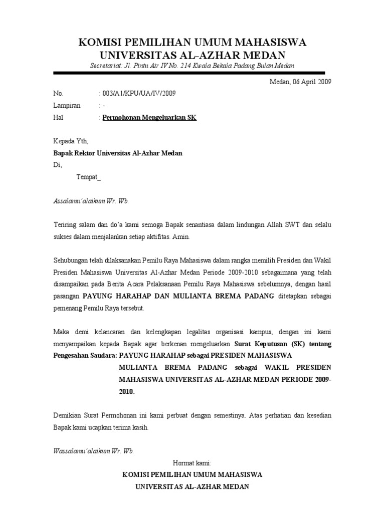 Contoh surat permohonan sk susunan pengurus nurhadi sulistyo. Berita acara hasil musyawarah masjid demikian surat permohonan pengesahan ini kami sampaikan, atas perhatiannya kami ucapkan terimakasih. 450/98/sk/ 2013, tentang pembentukan pengurus masjid agung babusslam. Susunan pengurus yayasan hidayah salsabila. Contoh surat permohonan sk ikatan remaja masjid nurul yaqien tassilli (ikranul) dusun tassilli desa pattallassang kab.